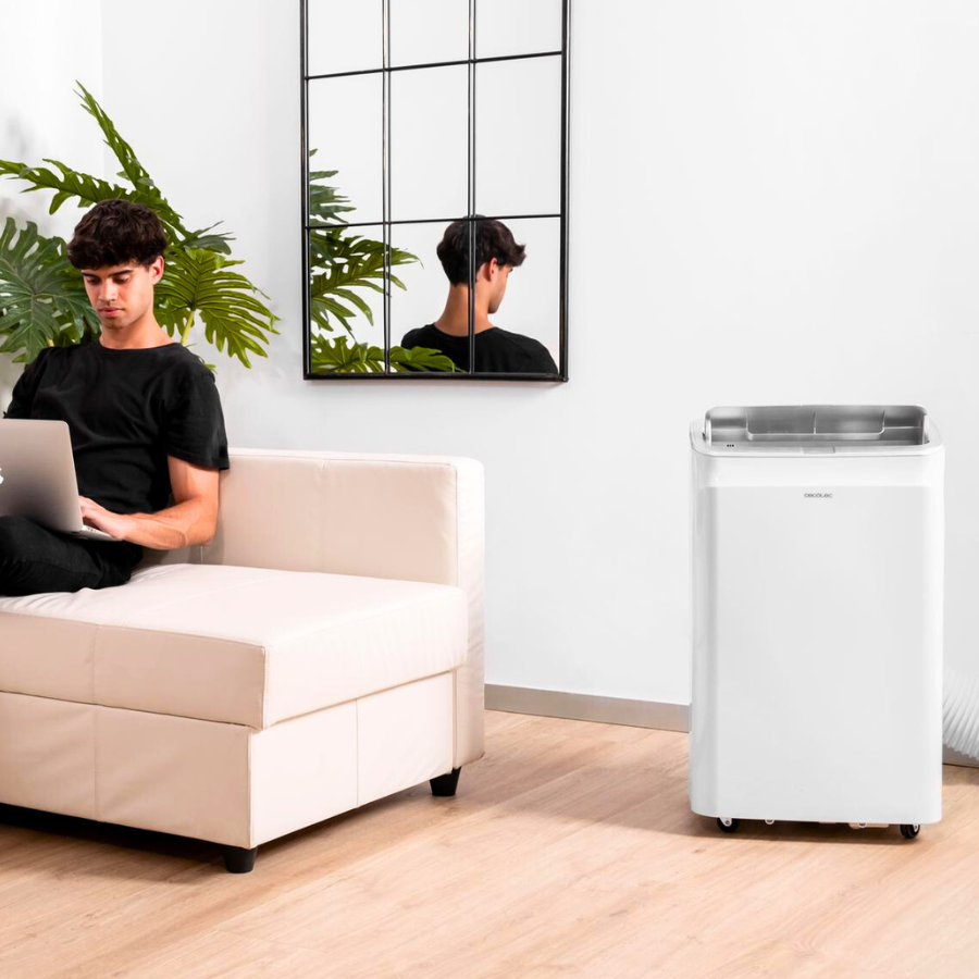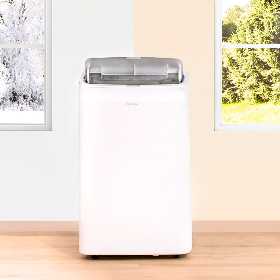 El Aire Acondicionado Portátil Monobloc 12000 BTU/h es la solución ideal para climatizar su hogar durante todo el año, cubriendo eficientemente espacios de hasta 28m². Este equipo 4-en-1 destaca por su versatilidad, ofreciendo Enfriamiento, Calefacción por bomba de calor (Clase A+), Deshumidificación y ventilación. Gracias a su alta eficiencia energética (Clase A en frío) y el uso del gas refrigerante R290 de bajo impacto, garantiza un funcionamiento potente y respetuoso con el medioambiente. Pensado para su comodidad, incorpora ruedas 360º para un fácil traslado, un temporizador de 24 horas y un Modo Noche para reducir el ruido (65dB). Listo para usar de inmediato, incluye el kit de instalación en ventanas.