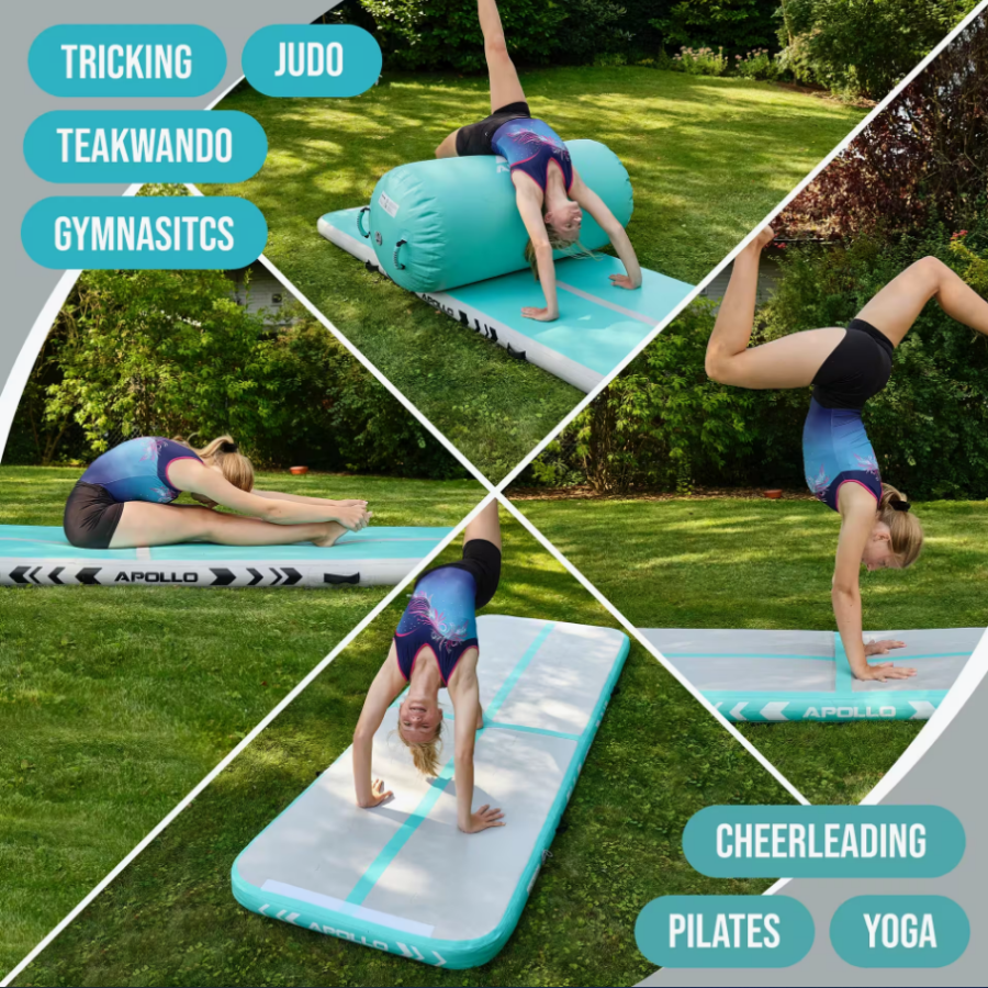 Apollo Air Mat Pro – colchoneta versátil para entrenar en casa o al aire libre La Air Mat Pro de Apollo es una colchoneta inflable de alta calidad, disponible en longitudes de 3 o 4 metros. Perfecta para gimnasia, yoga, artes marciales y acrobacias – ya sea en casa, en el jardín o en el gimnasio.