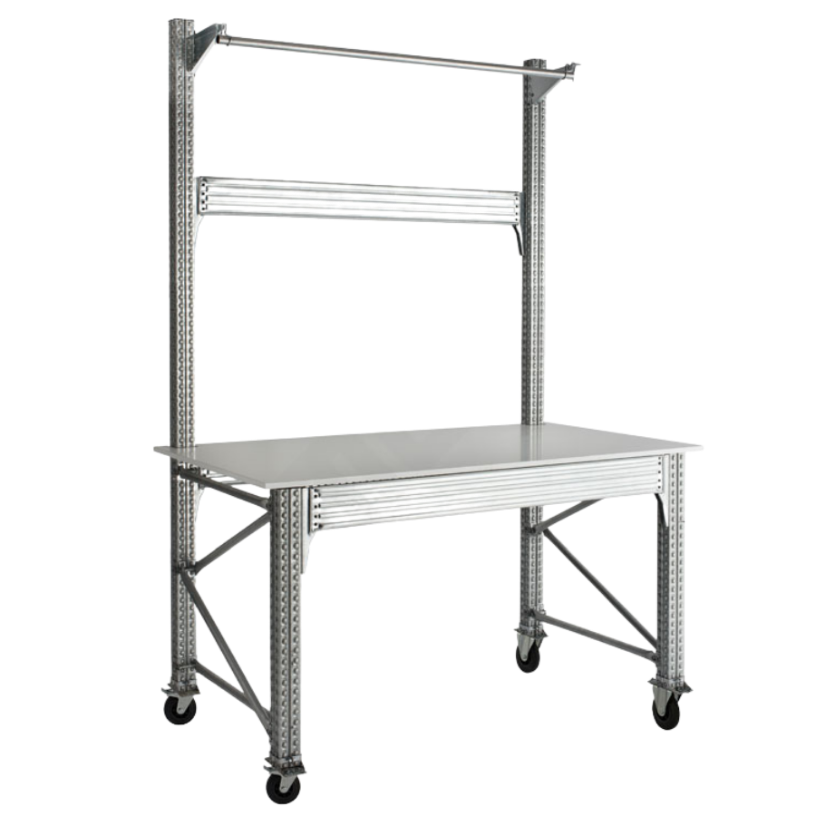 El Banco de Embalaje GT1 Pesos Pesados tiene una amplia superficie de trabajo que facilita el manejo de grandes volúmenes. Incluye un eje porta bobinas superior, con una capacidad de carga por bobina de 25 kg. Consultar para bobinas de mayor peso. El banco no incluye la bobina.