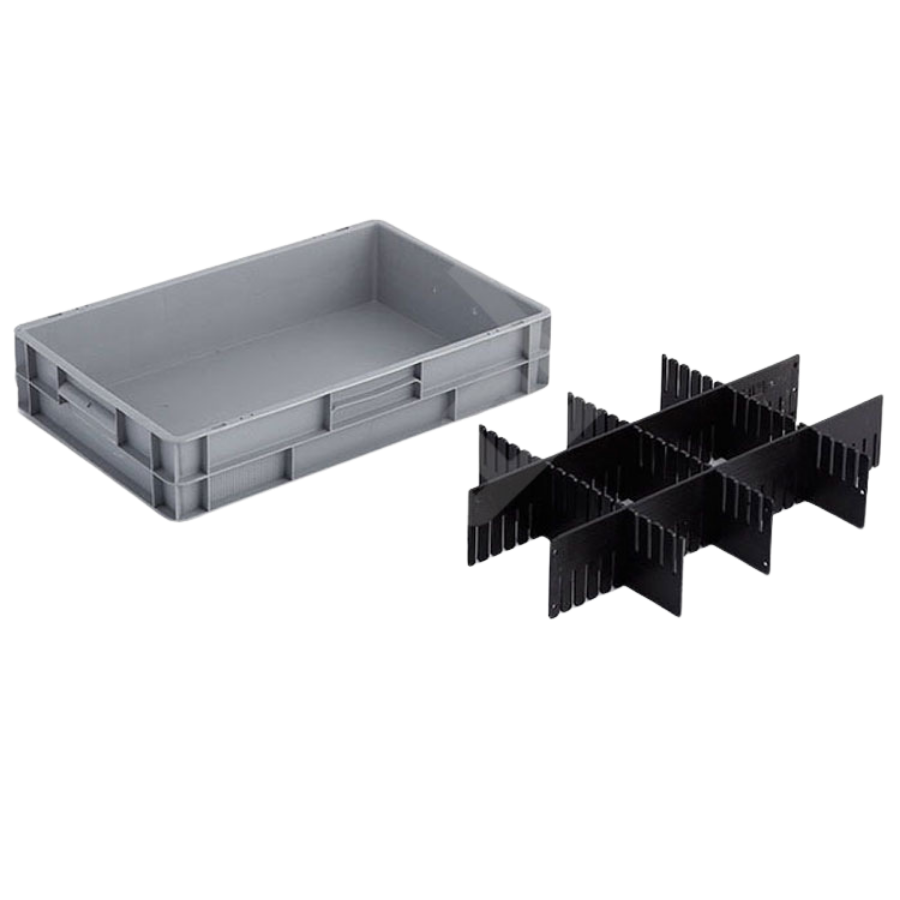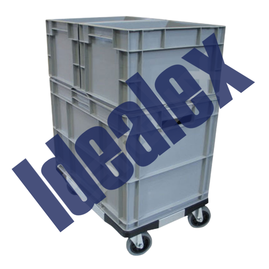 Están fabricadas en resistente polipropileno gris, con base rugosa antideslizante, adecuada para caminos de rodillos. Cuentan con una resistencia térmica entre -20º y +80ºC. Le ofrecemos posibilidad de múltiples accesorios como tapas, clips de plástico, etiqueteros, bases con ruedas.