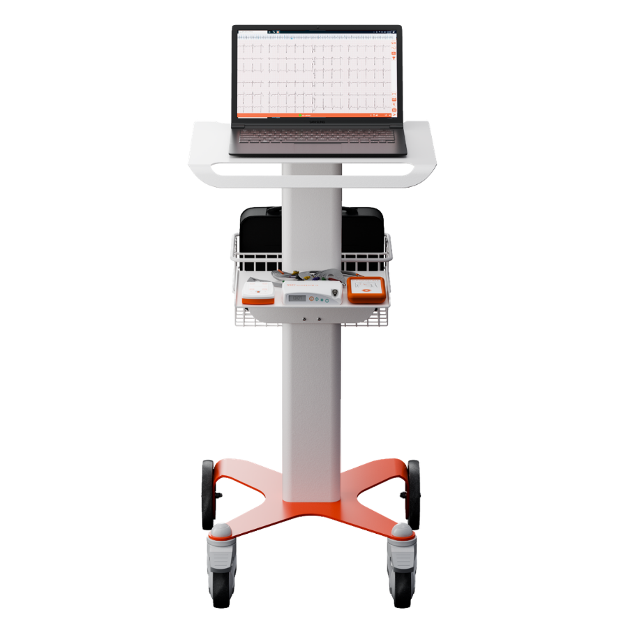 La solución incluye las unidades de adquisición , un portátil con software preinstalado, un carrito específico y un maletín de transporte para los dispositivos. Se incluyen algunos electrodos para las primeras aplicaciones.