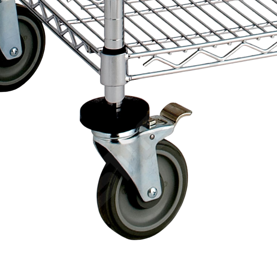 • Las Ruedas de Ø 125 mm son de suave rodadura, haciendo los traslados muy cómodos para el usuario. Son antihuella y antihilo, además de ser orientables, 2 de ellas con freno. Estas ruedas de Ø 125 mm permiten una capacidad de carga de 270 kg/carro. Se suministran ya montadas sobre los tubos para su mayor comodidad.