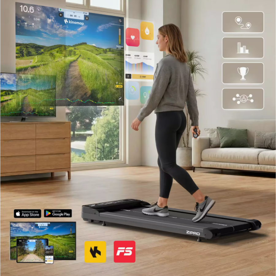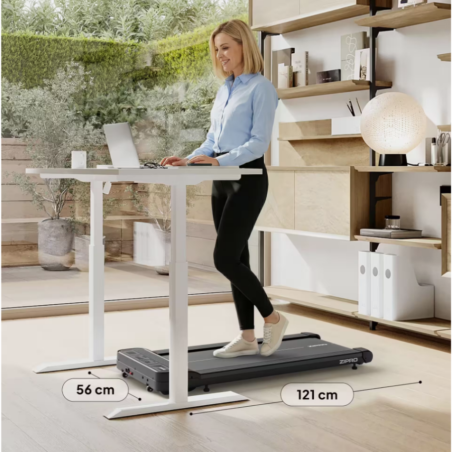 La ZIPRO Catwalk es una cinta de caminar compacta, diseñada para integrar el movimiento en tu día a día. Es ideal para usar debajo del escritorio, frente al televisor o mientras escuchas un podcast. Perfecta para espacios pequeños y un estilo de vida moderno.