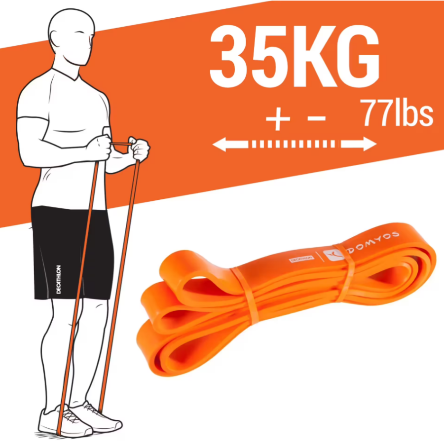 Ofrece una resistencia de 35 kg, es decir, hay que aplicar una fuerza de 35 kg para estirar el elástico hasta el 200% de su tamaño.