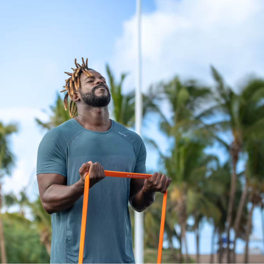 Fácil de transportar, robusta y resistente a un uso intensivo. Perfecta para deportistas que no se pierden un entrenamiento, incluso fuera de casa. ¡Banda elástica compatible con la app Freeletics!