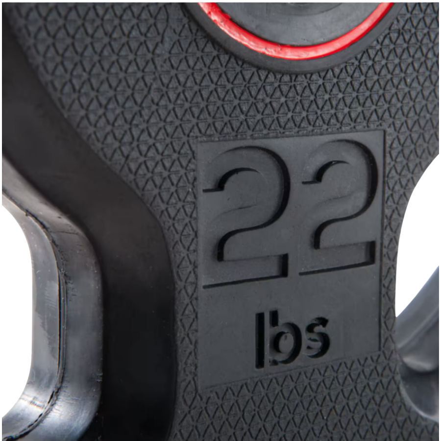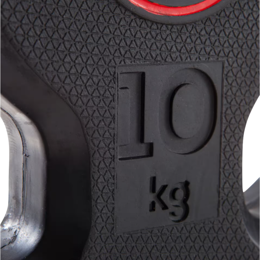 Nuestros discos de goma son fáciles de transportar gracias a su asa ergonómica. Esto permite utilizarlos como mancuernas para variar aún más tus ejercicios. Equipados con un anillo de acero inoxidable en el centro, se adaptan fácilmente a barras de 28 mm. Y, por supuesto, su revestimiento de goma amortigua los impactos y protege los suelos.