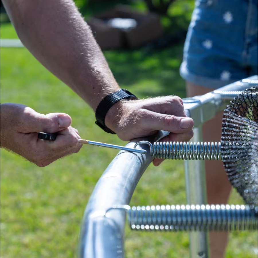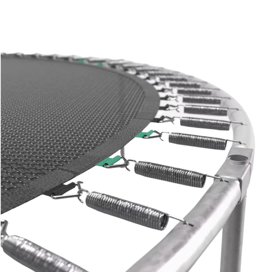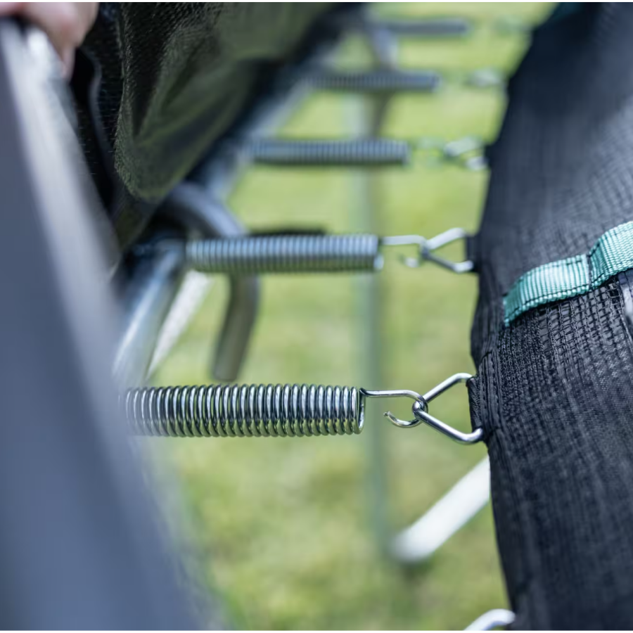 Nuestra cama elástica 300 es muy segura gracias a su entrada protegida y a la red de seguridad que impide el acceso a los muelles. La estructura y la lona de salto cuentan con 5 años de garantía.