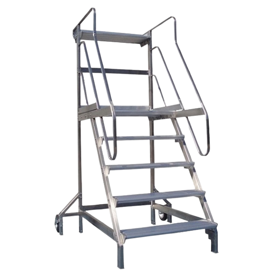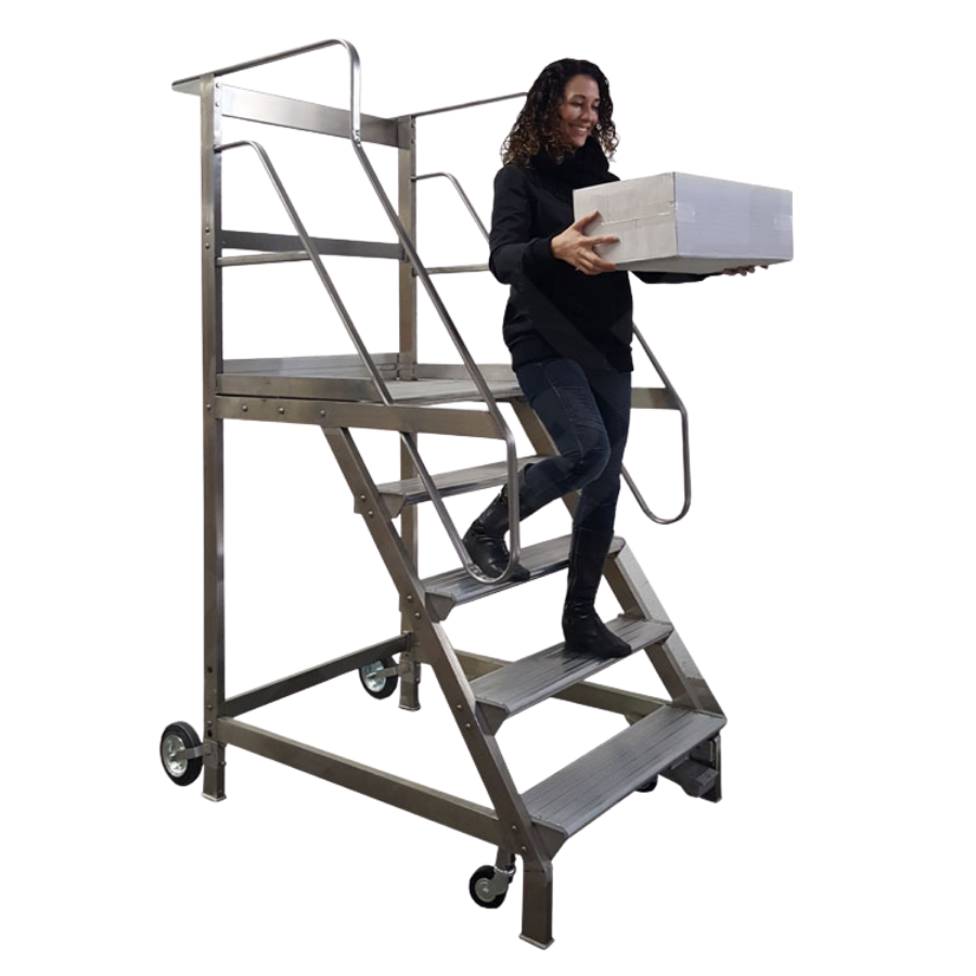 • La Escalera tipo SR sobre 4 ruedas, con mecanismo de freno es una escalera robusta y de amplias dimensiones.