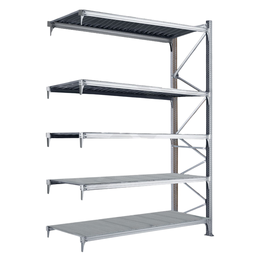 • Las Estanterías metálicas TS de 5 estantes para carga manual con grandes vanos.