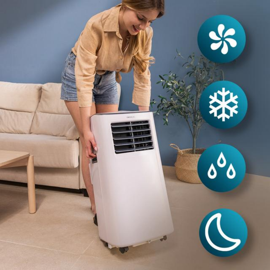 • Aire acondicionado portátil con una gran capacidad de enfriamiento de 7000 BTU. Dicha capacidad facilita conseguir la temperatura deseada en la estancia de manera rápida y eficaz.