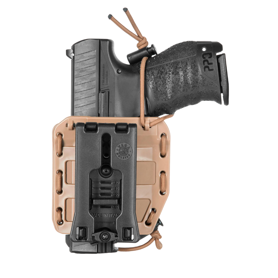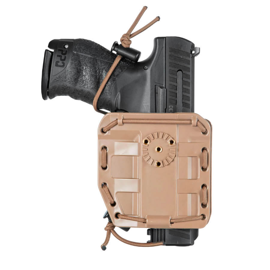 Ajustable mediante un sistema elástico tubular, se adapta fácilmente a todas las armas automáticas grandes y compactas del mercado.