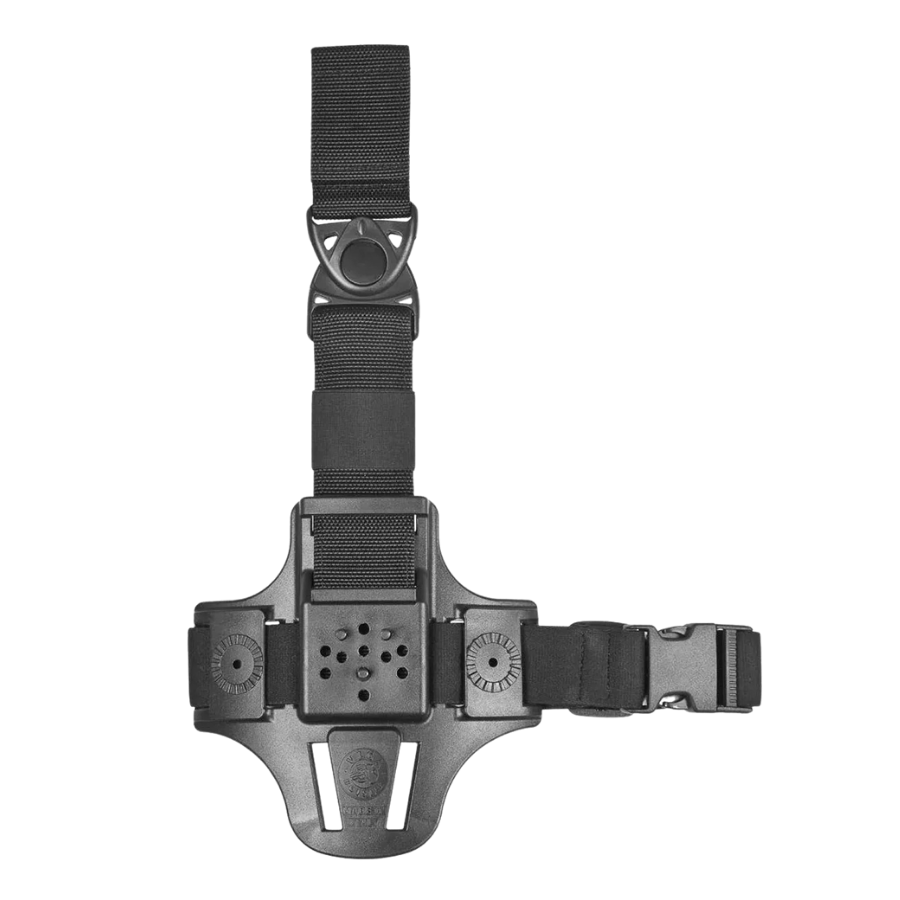 Incluye una hebilla giratoria para facilitar el movimiento y una correa única con rieles antideslizantes para un anclaje estable al muslo.