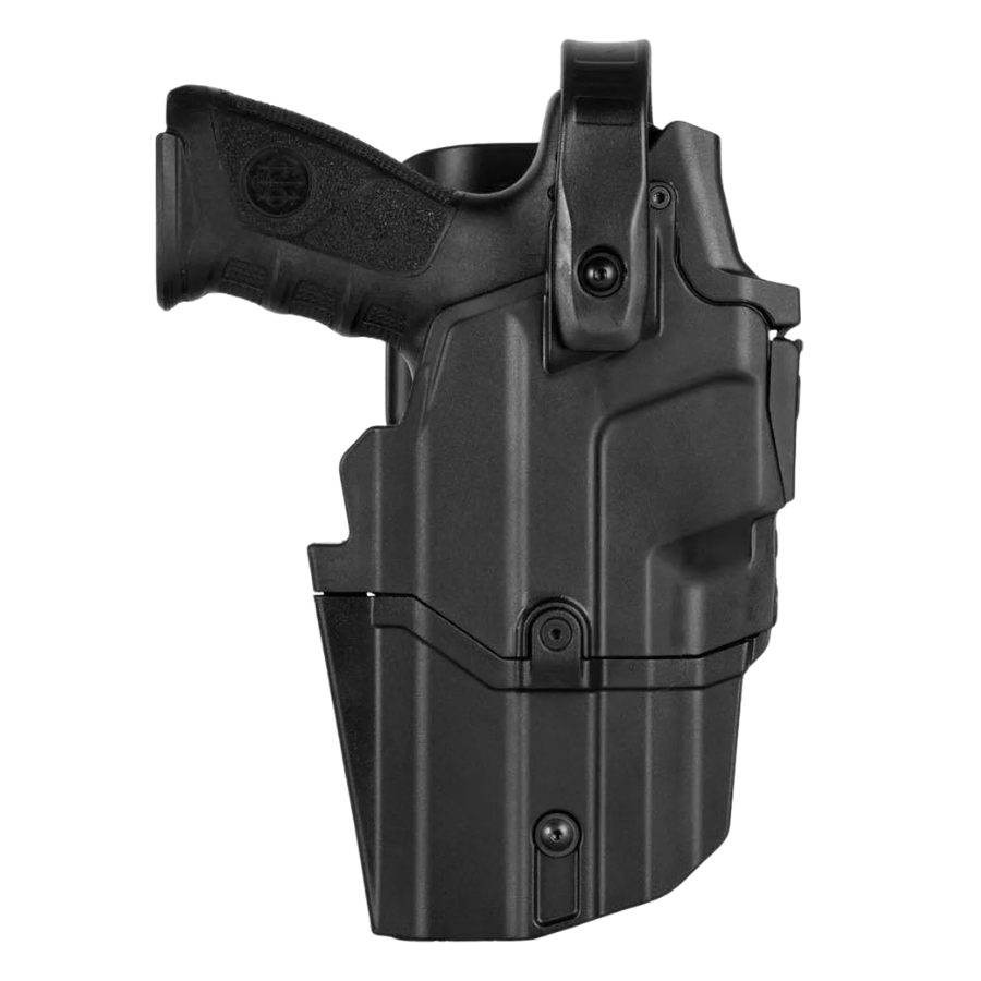 Sistema de seguridad «Front Stop» en la ventana de expulsión, que se libera mediante una palanca dentro de la funda mediante un movimiento natural del pulgar hacia atrás.