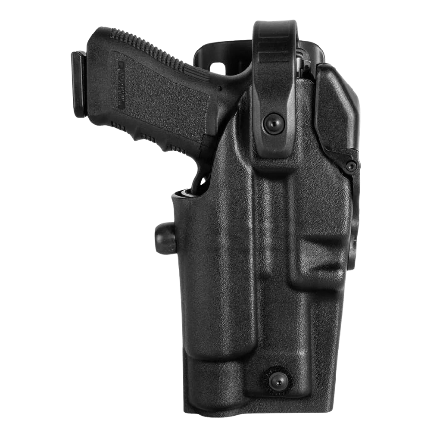 Sistema de seguridad superior «ASPF» con correa giratoria ajustable que se engancha a la parte superior del arma y se libera con un movimiento del pulgar hacia abajo y hacia adelante.