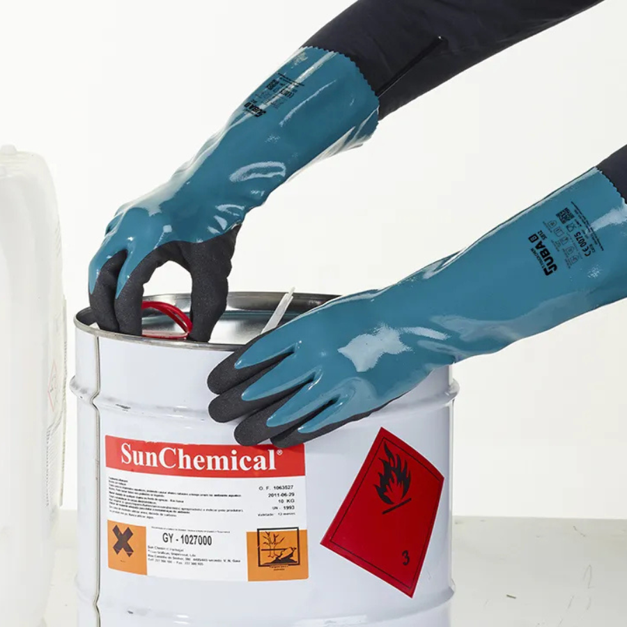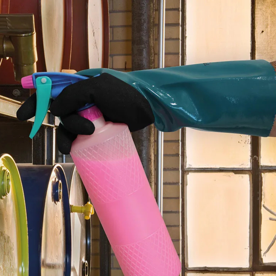 Guante con soporte de Nylon® y doble recubrimiento bipolímero (Nitrilo + PU base acuosa). Con tecnología T-Touch en palma y dedo pulgar.