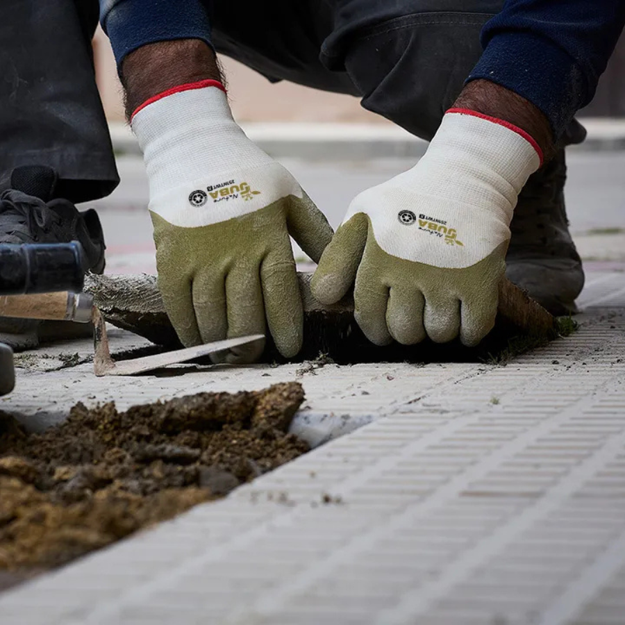 Poliéster/algodón reciclado recubierto de látex rugoso, forrado interior.