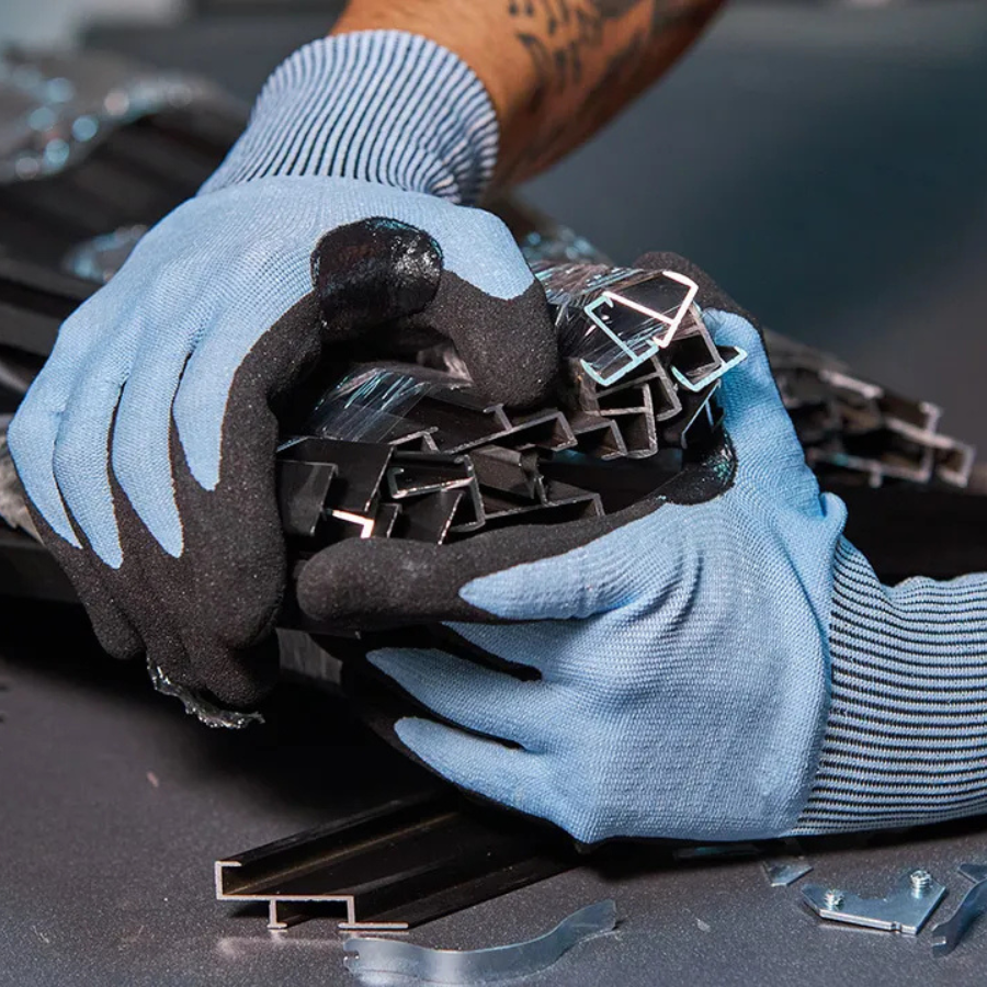 • Manipulación de piezas metálicas con cantos o aristas cortantes, tanto secas como ligeramente aceitadas.