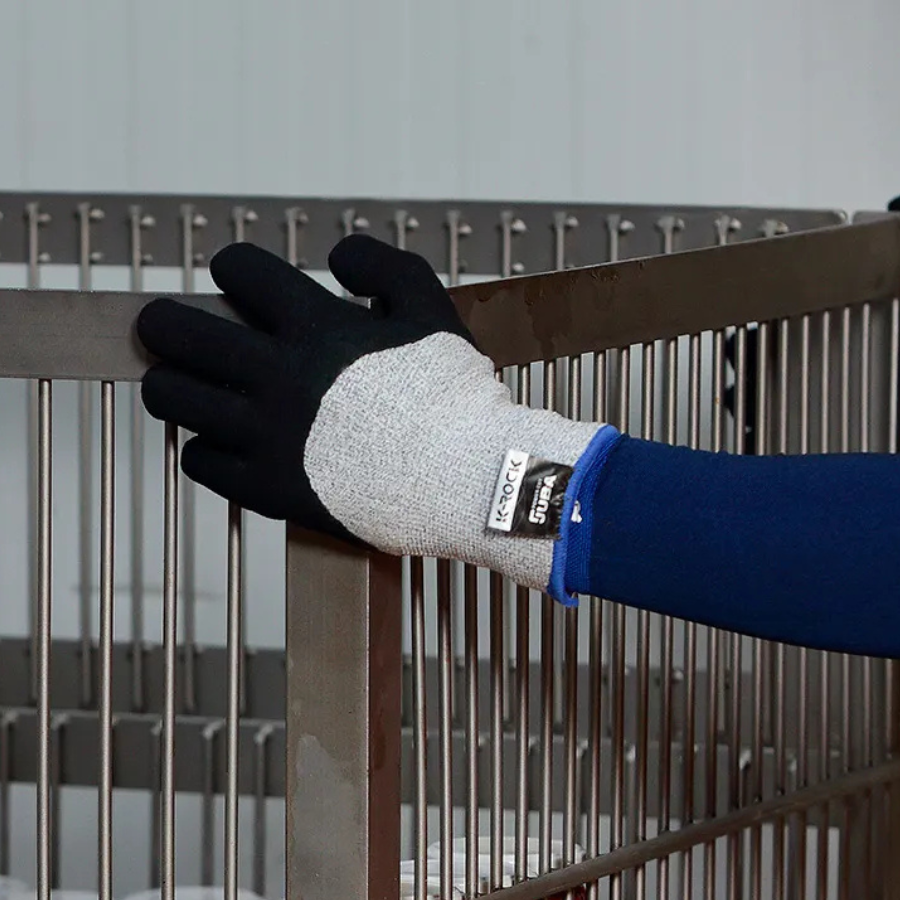 Guante de fibra K-ROCK® sin costuras con micro espuma de nitrilo hasta medio dorso e interior de vulrizo.