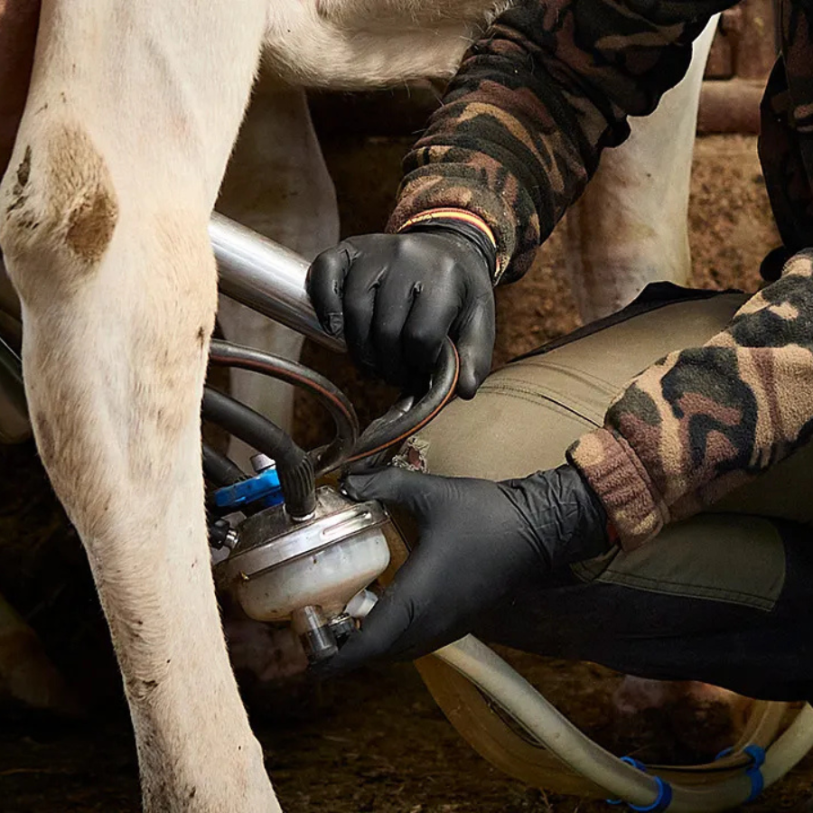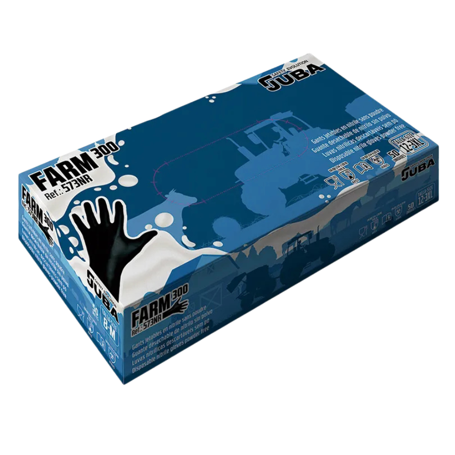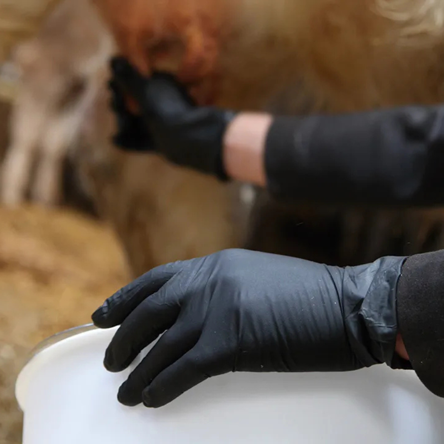 Guantes desechables de nitrilo sin polvo, 300 mm de largo.