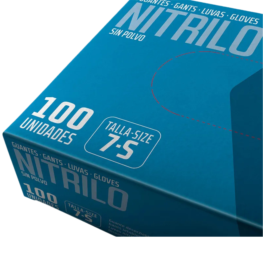 Guante desechable de nitrilo sin polvo.