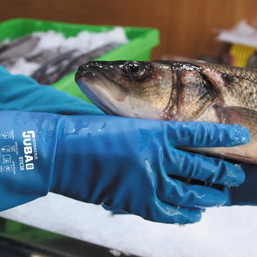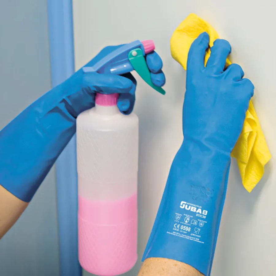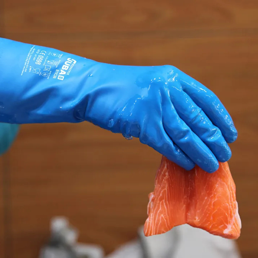 Guante sin soporte de nitrilo satinado color azul
