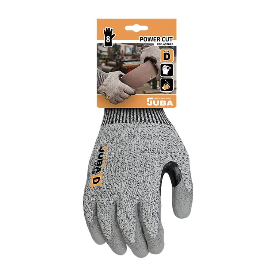 Guante de fibra textil K-rock®, la nueva tecnología de corte de Juba, recubierto de poliuretano en la palma.