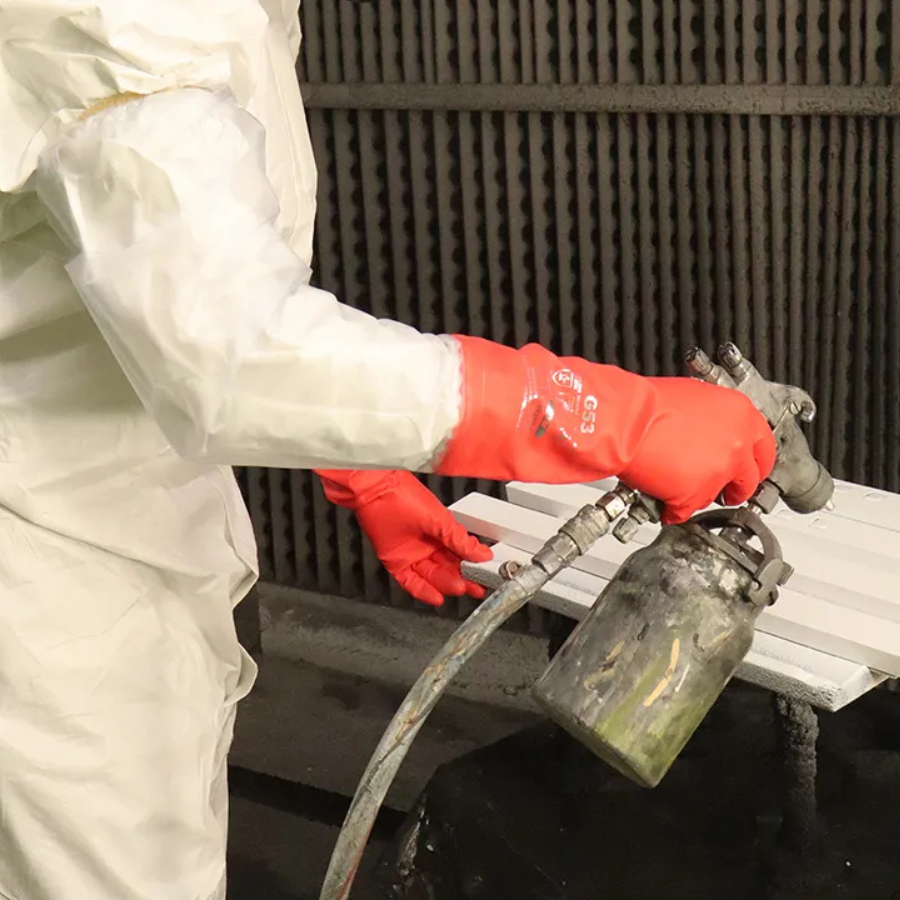Guante de PVC flocado con manguito extra largo