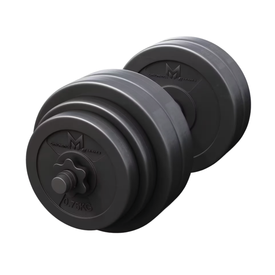 Utilízalo como parte del entrenamiento con mancuernas para aumentar los músculos del pecho, los brazos y los hombros. La mancuerna Gyronetics Series E te proporciona todo lo que necesitas para el entrenamiento básico con pesas. Los 28 kg de pesas y las 2 barras de 1 kg te permiten aumentar el tamaño y la fuerza de los músculos a tu propio ritmo. Estas pesas tienen un práctico revestimiento de plástico, lo que significa que no rayarán ni dañarán otros equipos como los bancos o el suelo.