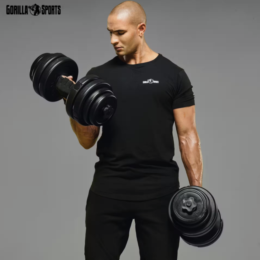Utilízalo como parte del entrenamiento con mancuernas para aumentar los músculos del pecho, los brazos y los hombros. 2 barras de 45cm.Discos:8 x2,5Kg, 4×1,25kg, 4×0,75Kg