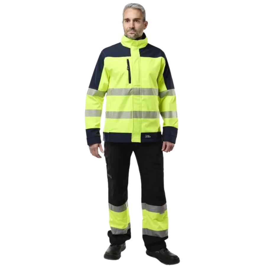 • Esta chaqueta softshell de alta visibilidad ha sido diseñada para ofrecer la máxima protección y confort en entornos de trabajo exigentes. El tejido con una IMPERMEABILIDAD de 8000mm y una transpirabilidad de 800mvp te protege eficazmente de la lluvia y el frío, manteniendo el cuerpo seco.