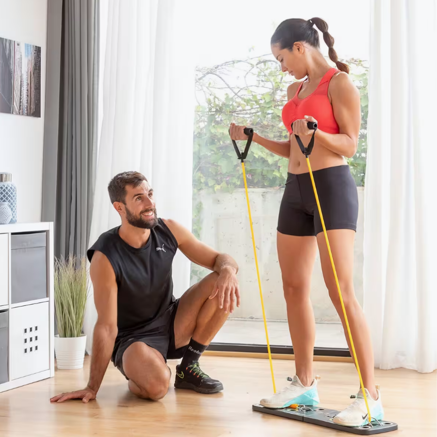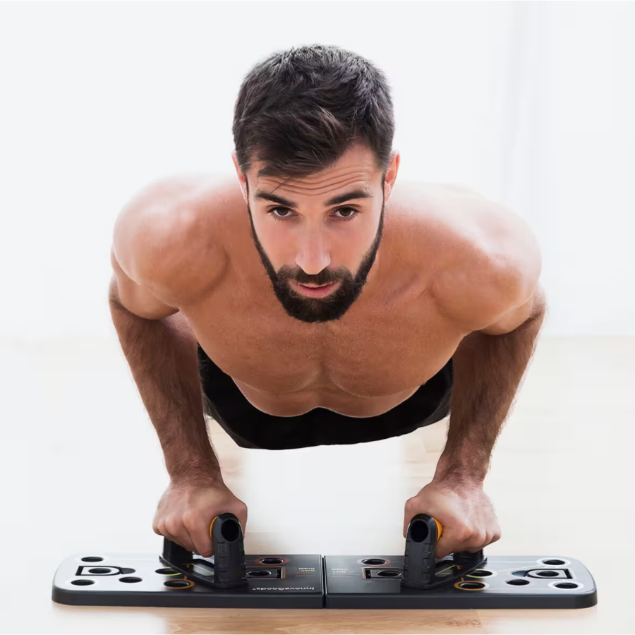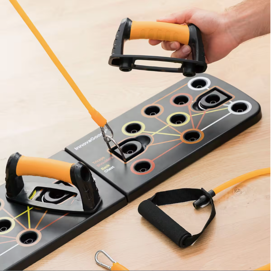 Esta tabla de flexiones push-up con bandas de resistencia es perfecta para un entrenamiento integral, ya que incluye tabla de ejercicios desmontable, agarraderas, bandas de resistencia y guía de ejercicios para ejercitar todo el cuerpo.
