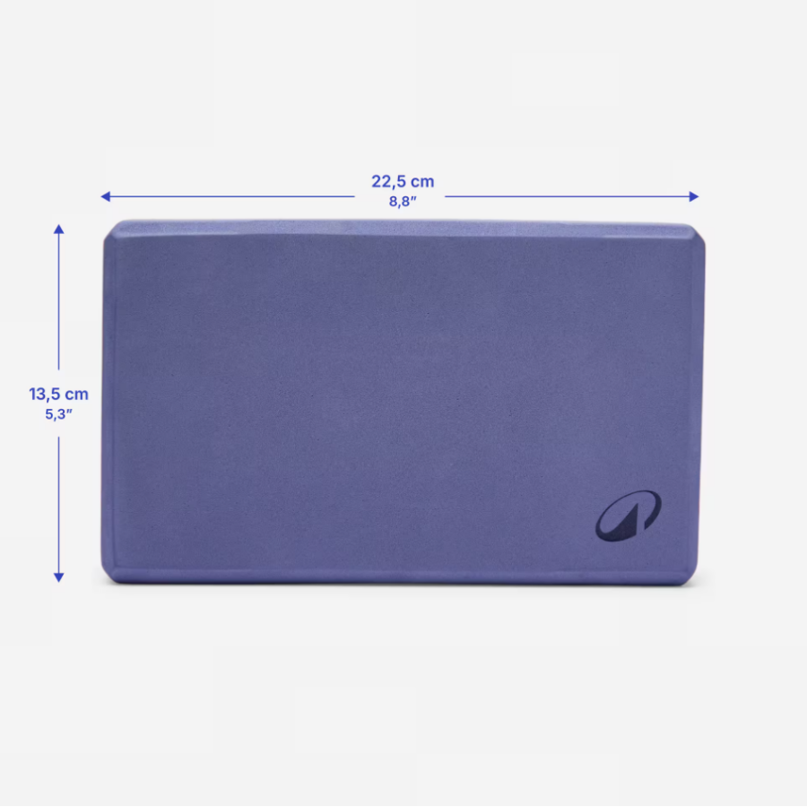 Bloque de yoga (22,5×13,5×7,5 cm) en espuma técnica suave al contacto y ligero de transportar (100g). La opción accesible y técnica, para progresar en cada una de tus posturas de suelo y abertura.