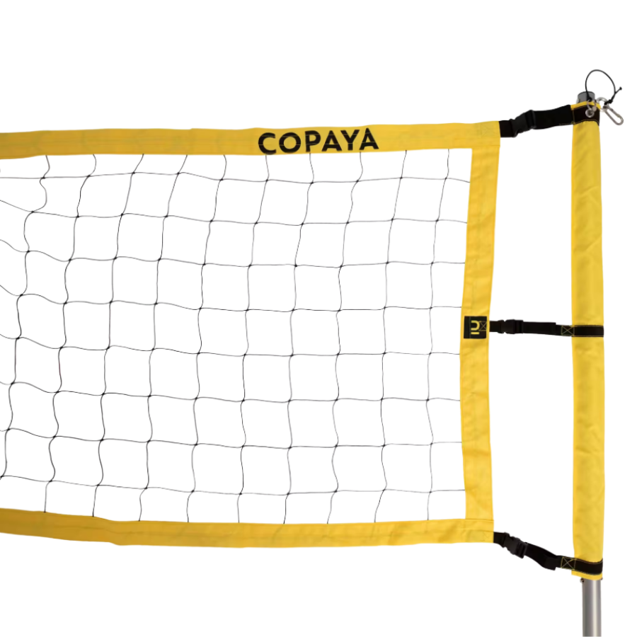 Puedes ajustar este set a las tres alturas oficiales para la práctica del vóley playa: 2,24 m para las mujeres, 2,35 m para los jóvenes y 2,43 m para los hombres.