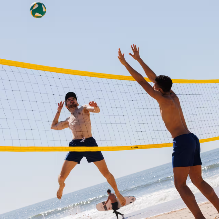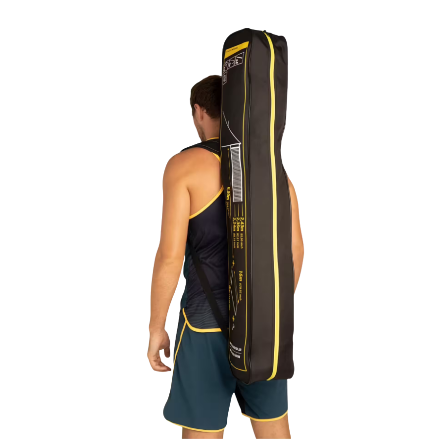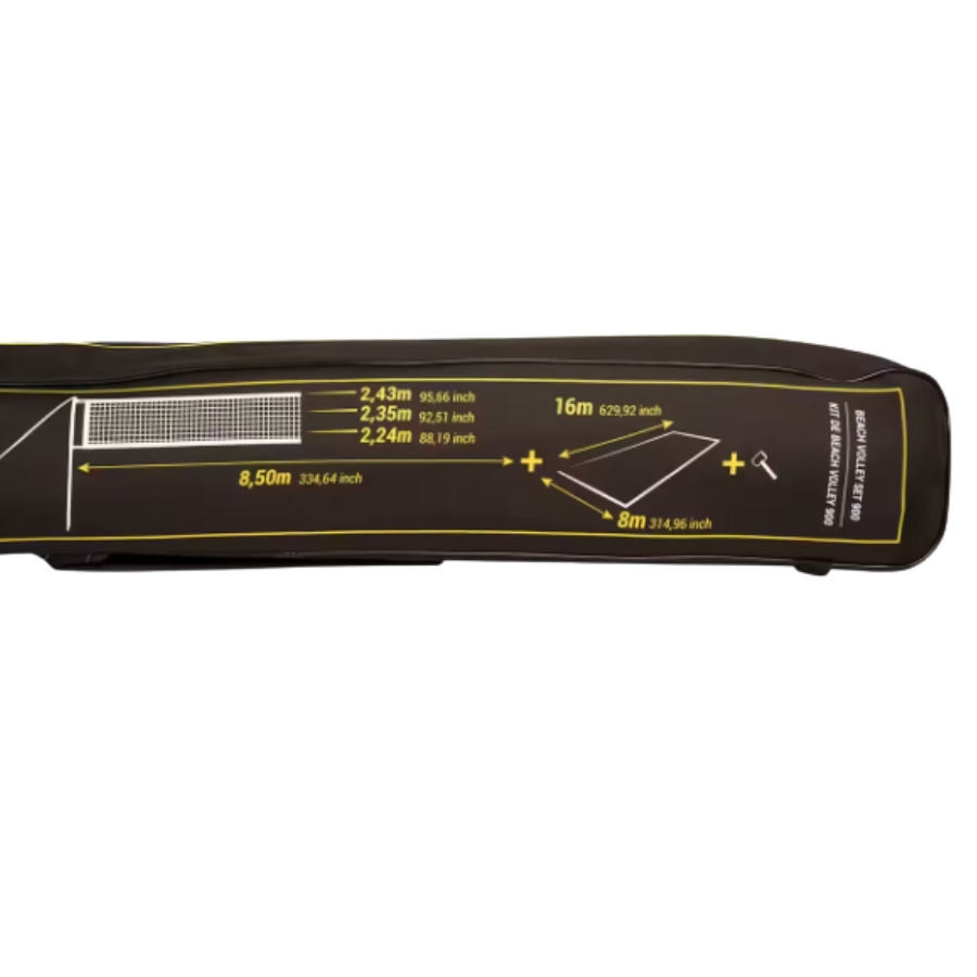 Nuestro equipo de diseño ha concebido este set con medidas y alturas oficiales para disfrutar del vóley playa, es fácil de transportar gracias a su bolsa que mide 1,17 m x 19 cm x 11 cm y pesa 5kg.