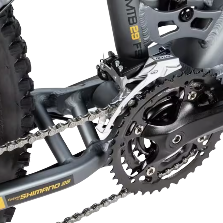 Bicicleta de montaña Full suspensión total de 29″, autonomía de hasta 120 km, equipada con Shimano, 24 velocidades, batería integrada y extraíble