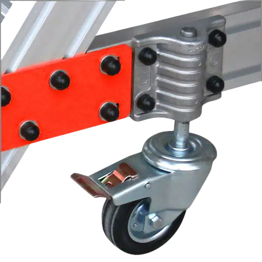 Nuestra plataforma industrial de aluminio EPC con doble subida es la elección perfecta para aquellos que buscan eficiencia y seguridad en sus trabajos. Diseñada con características excepcionales, esta plataforma ofrece un acceso seguro y cómodo a diferentes alturas de trabajo. Equipada con puertas abatibles Safe Return. La plataforma de trabajo de 60 x 75 cm proporciona el espacio necesario para llevar a cabo las tareas de manera cómoda y eficiente en 360º. Además, las ruedas escamoteables con freno facilitan el transporte y la movilidad, asegurando la estabilidad durante su uso.
