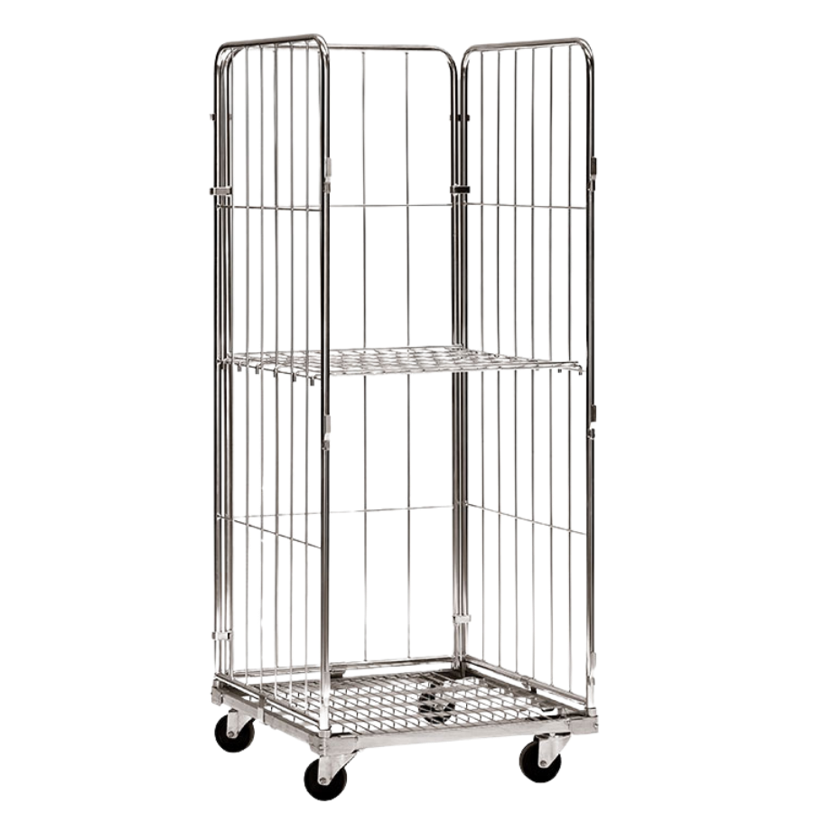 3) Con 3 laterales y estante intermedio regulable en altura cada 390 mm. Incluye 1 goma elástica de retención con gancho.