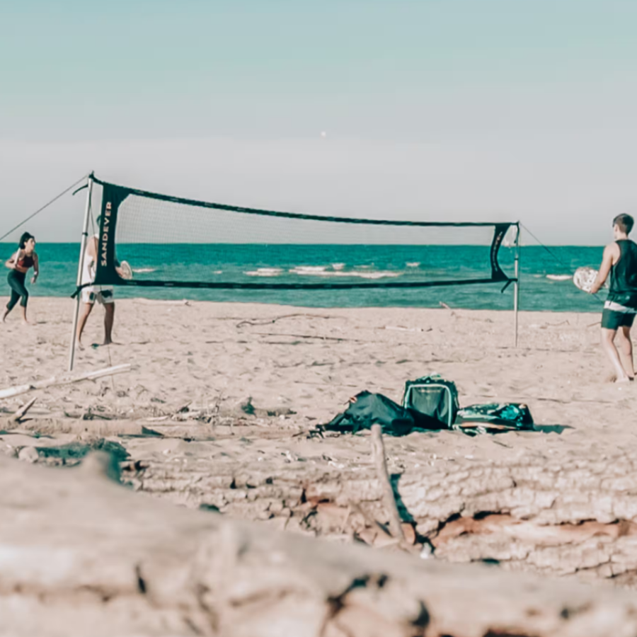 El kit red se entrega con líneas de 8 metros x 16 metros. Piquetas para sujetar los postes y las líneas. Un mazo para plantar las piquetas, bases para una mayor estabilidad en terreno de arena fina.