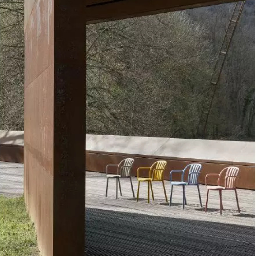 Silla para uso interior y exterior. Inyectado en polipropileno con fibra de vidrio. Apilable. Protección UV. Peso neto 3,77 kg.