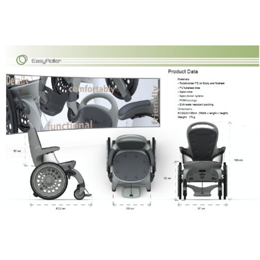 Ficha Tecnica: Silla de ruedas para resonancia magnética Easy Roller II, 100 % termoplástico.