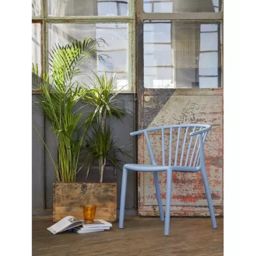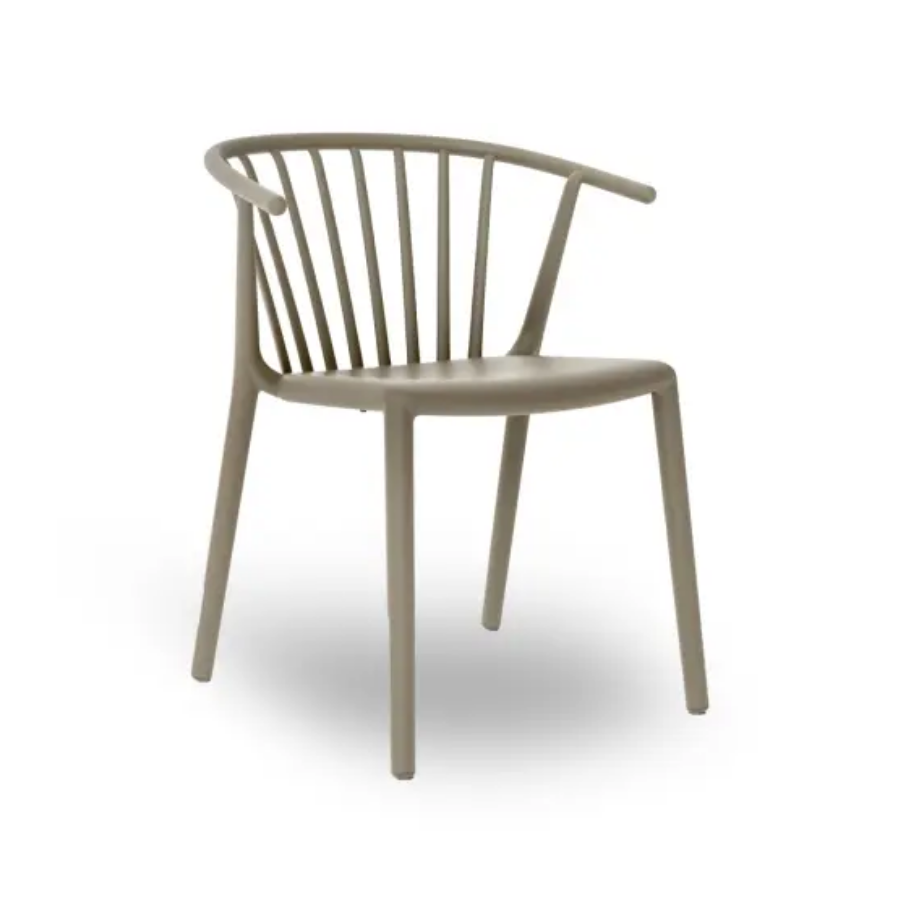 Silla con brazos para uso interior y exterior. Inyectada en fibra de vidrio con PP. Apilable. Protección UV. Peso neto 4,2 kg.