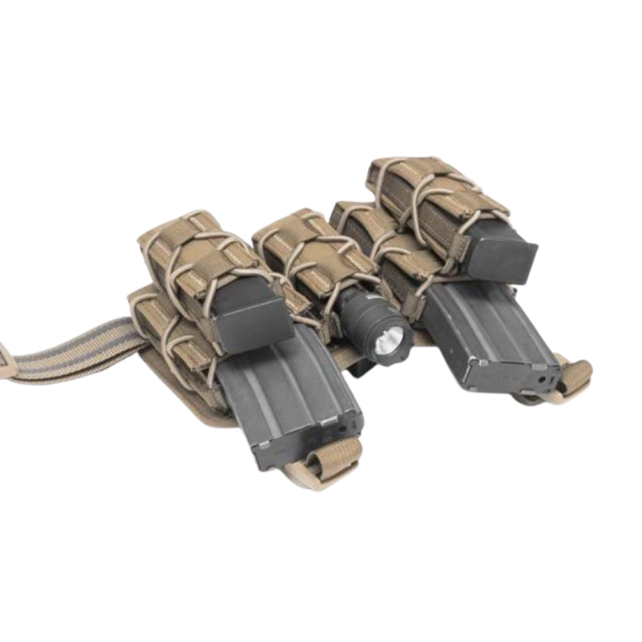 La pata de cañón Sabre es un arma compacta, totalmente versátil e ideal para diversas situaciones. Incluye dos portacargadores individuales rápidos Warrior (SQM) y tres portacargadores SQM de 9 mm (también compatibles con linternas y multiherramientas).