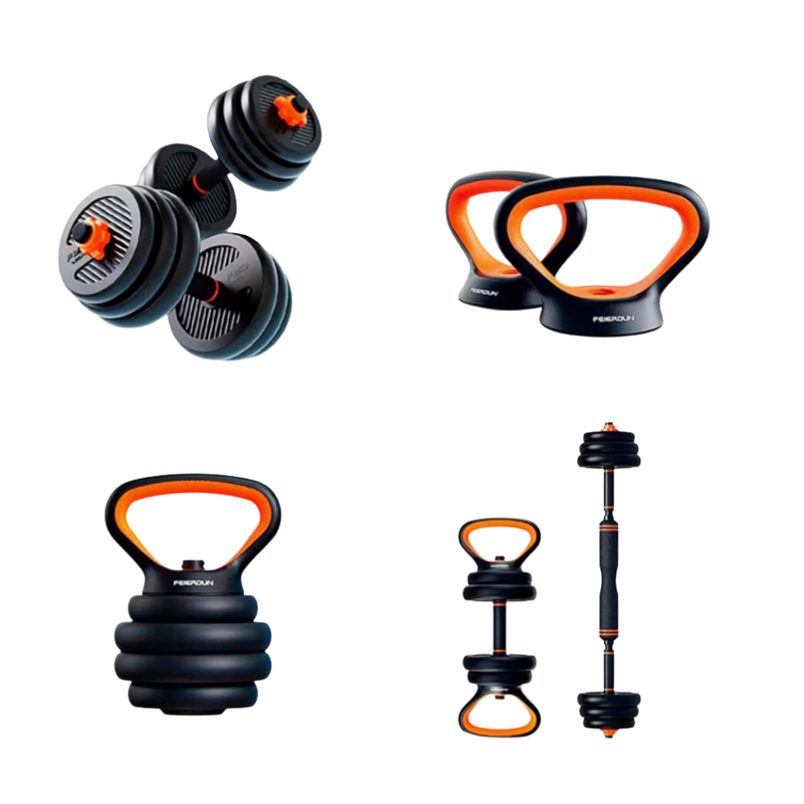 Se pueden montar mancuernas, pesas rusas, barras con pesas y agarres para hacer flexiones.